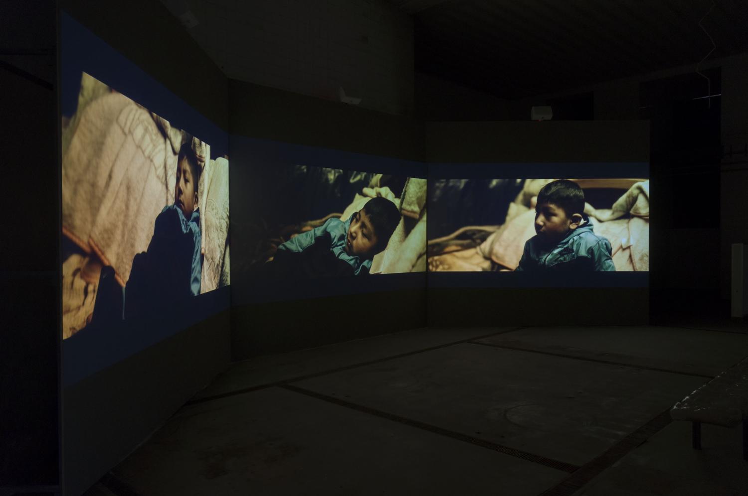 Three–channel HD video installation, 2:39, color, three–channel mono sound, 90 min. sync in a loop, Peru/Portugal/Switzerland/FranceCommission: Biennale de l’Image en Mouvement – BIM 2016